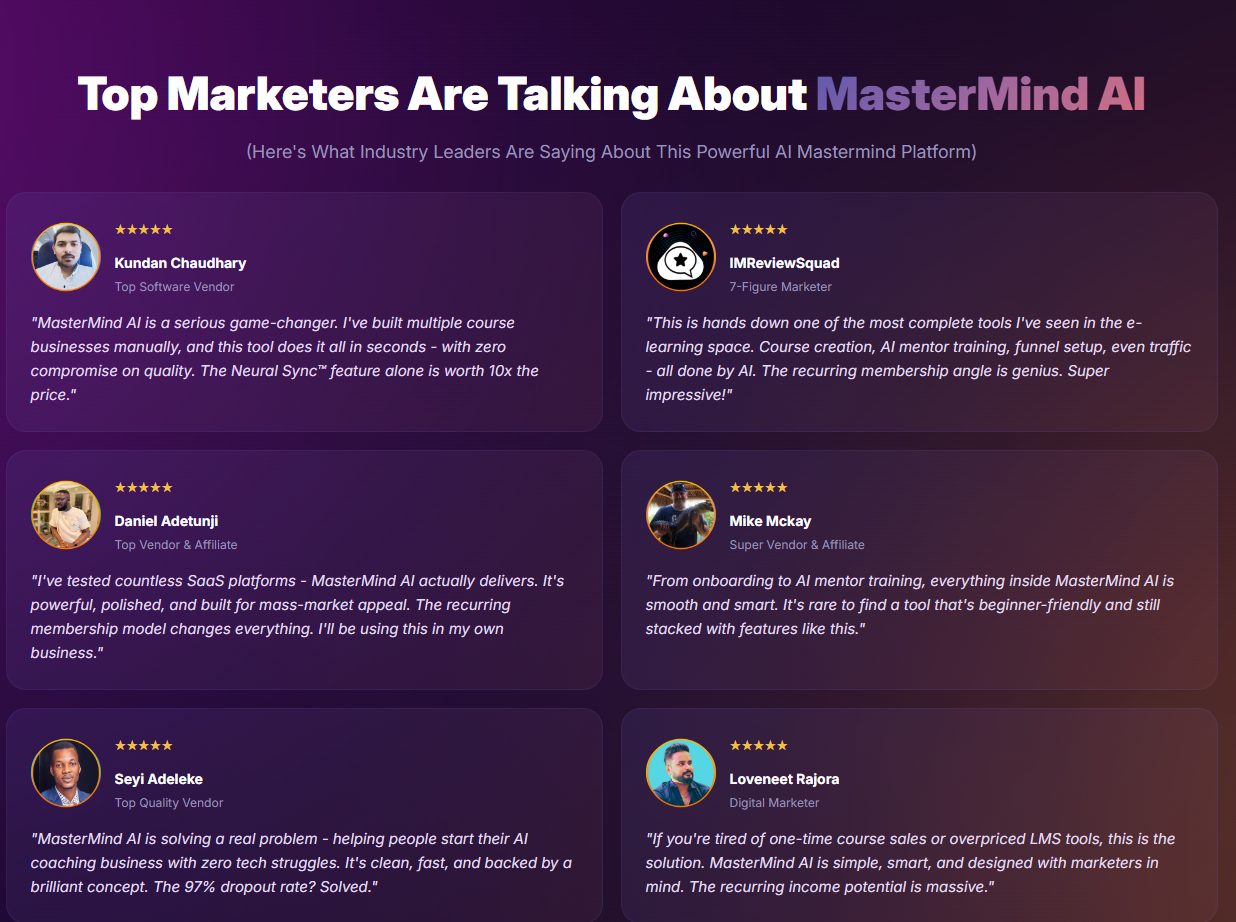 MasterMind AI flips that entire script. It removes every single barrier that stops most folks from succeeding. You get instant courses, instant mentors, instant websites, instant traffic, and instant recurring payments. Instead of hoping for one sale, you build a membership business that pays you while you’re at the gym, on vacation, or even sleeping.